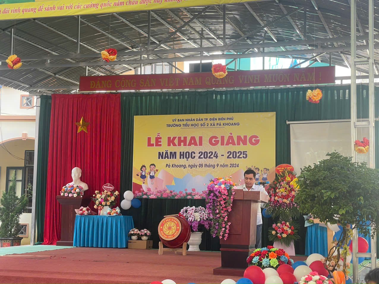 Tại Lễ khai Giảng Đ/c Cà Văn Chung PCT xã Pá Khoang có đôi lời phát biểu và chỉ đạo thầy và trò nhà trường trong năm học mới 2024-2025.